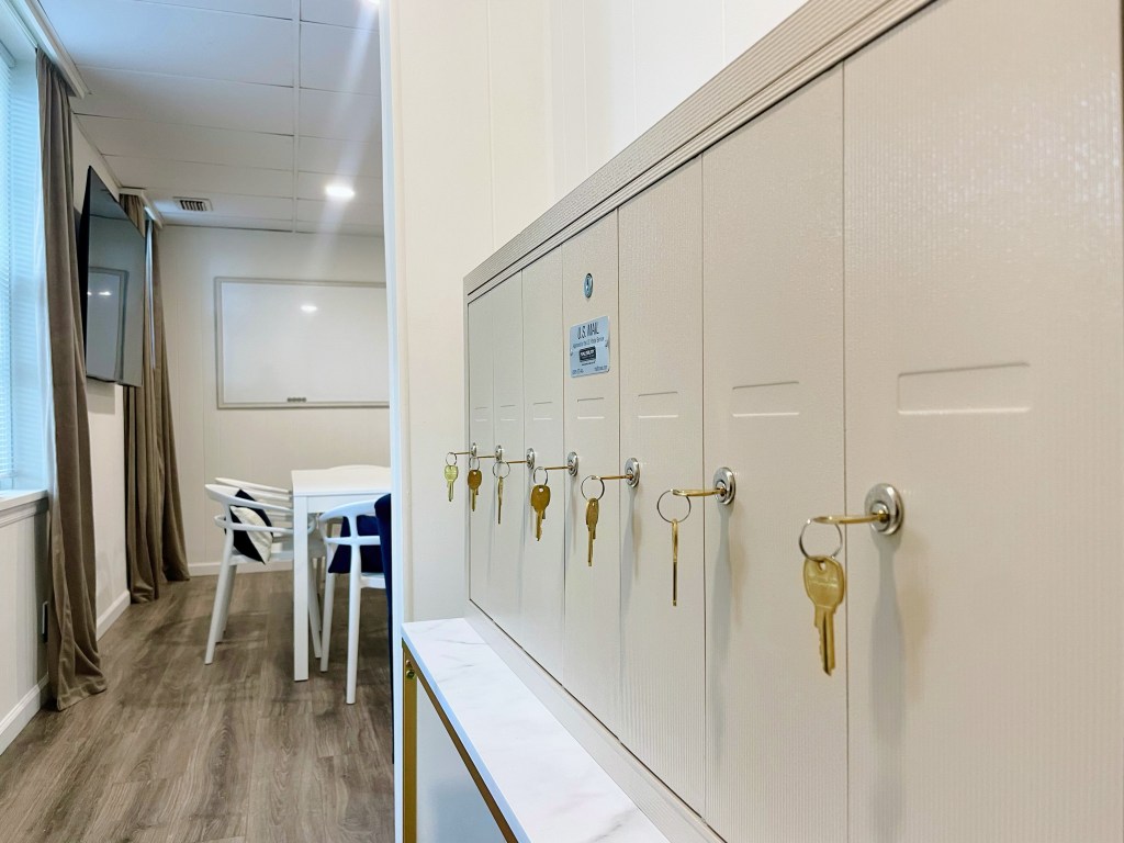 High Speed WiFi • Private Keyless Entry • Coffee Bar • Print • Copy • Scan • 65 in. HDR Smart TV • Apple AirPlay • Wireless HDMI • Whiteboard • Basic Office Supplies • Networking Events • Private Restroom Facilities • On-site Parking